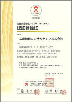 国際的な労働安全衛生マネジメントシステム規格「ISO 45001」の認証を取得