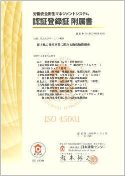| 認証範囲 | 業務範囲:洋上風力発電事業に関わる海底地盤調査 |